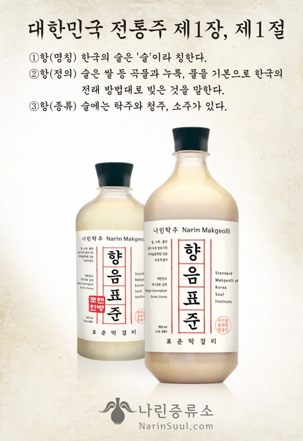 나린증류소의 대표 수제막걸리. 쌀량 대비 170%의 물량과 최소 비율의 누룩으로 발효시킨 탁주로서 정통 수제 막걸리의 면모를 자랑하는 술. 부드러운 산미와 구수한 곡식향이 일품.